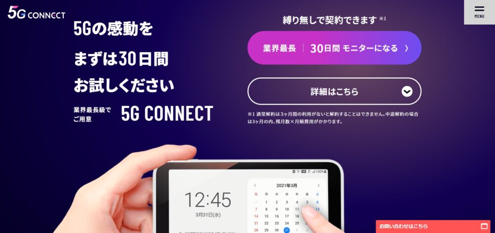 ぜひ5G回線が気になる方は、30日間のお試しモニターサービスをふくめ、5Gコネクトもご検討ください!
