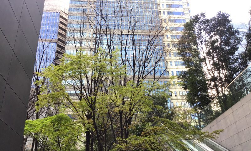 朝から2台のポケットwi-fiをかかえて都内各所で実測を繰り返してきたため、少し休憩しようと降り立ったのが大手町でした。じつは大手町の駅の上にはヒートアイランド現象を緩和させる目的でつくられた「大手町の森」という自然の森が再現されています。