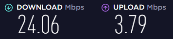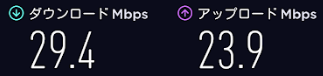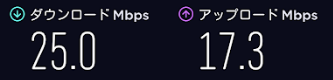 | 平均速度 | 下り速度 24.2Mbps 上り速度 13.15Mbps |