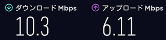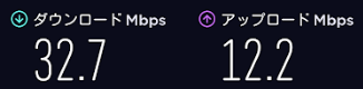 | 平均速度 | 下り速度 30.4Mbps 上り速度 9.1Mbps |