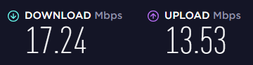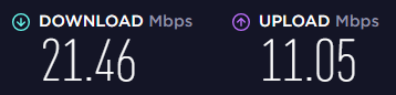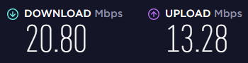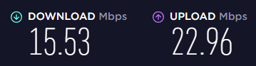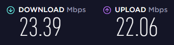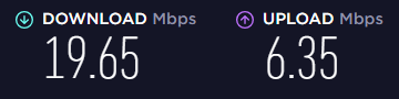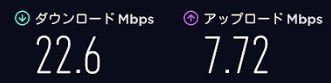 下り速度 19.5Mbps 上り速度 22.5Mbps |