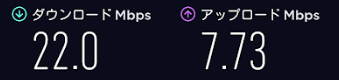 | 平均速度 | 下り速度 22.3Mbps 上り速度 7.7Mbps |