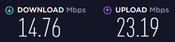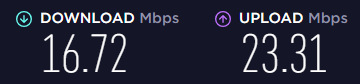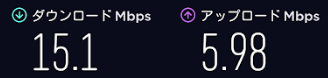 下り速度 15.7Mbps 上り速度 23.2Mbps |