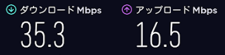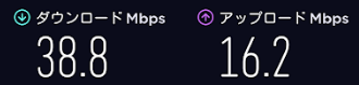 | 平均速度 | 下り速度 37.05Mbps 上り速度 16.35Mbps |