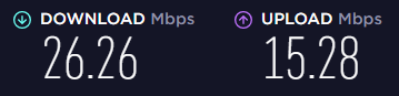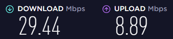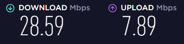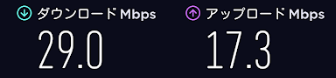 下り速度 28.9Mbps 上り速度 14.8Mbps |