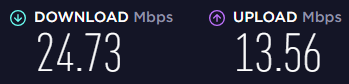 下り速度 23.86Mbps 上り速度 13.165Mbps |