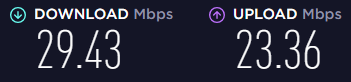 下り速度 29.2Mbps 上り速度 20.6Mbps |