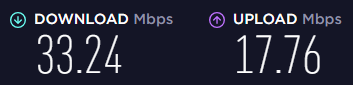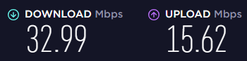 下り速度 31.4Mbps 上り速度 16.6Mbps |