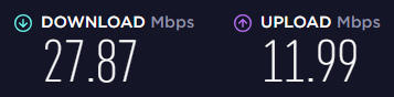 | 平均速度 | 下り速度 28.58Mbps 上り速度 12.59Mbps |