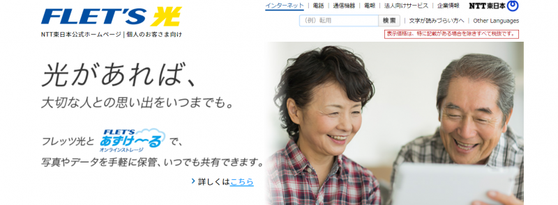 フレッツ光、光コラボ等の光回線+無線LANルーター