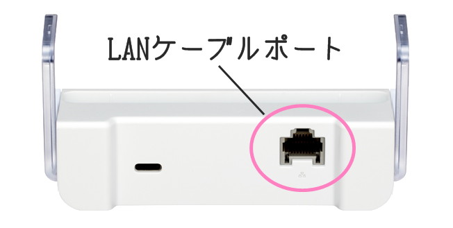 また専用クレードルの背面にはかならず『LANポート』とよばれるLANケーブル差込口があり、有線接続できます。