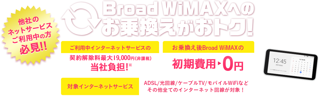 代替案① 乗換の違約金負担サービスのあるBroad WiMAX!