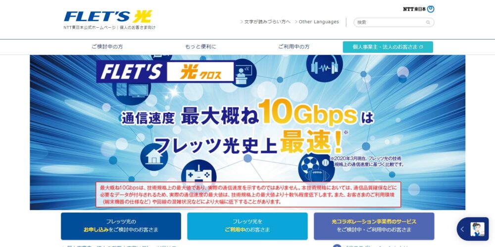 フレッツ回線を流用する光コラボは、光コラボ全体で回線設備を共有しています。結果、時間帯やエリアの利用者数によって速度が遅くなる可能性があります。