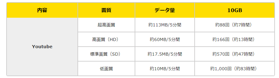 ちなみに10GBでYouTubeをどれくらい視聴できるのかというと…