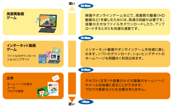 そもそも動画視聴やネットサーフィンに1GBという通信速度などまったく不要です。最低限、以下のレベルの通信速度で十分なんです。