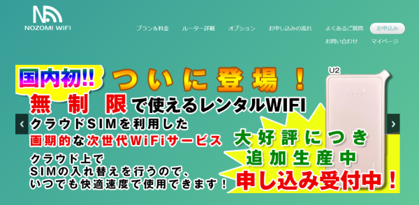 の2種類が定番という中、なんとNOZOMIwi-fiは画期的すぎる