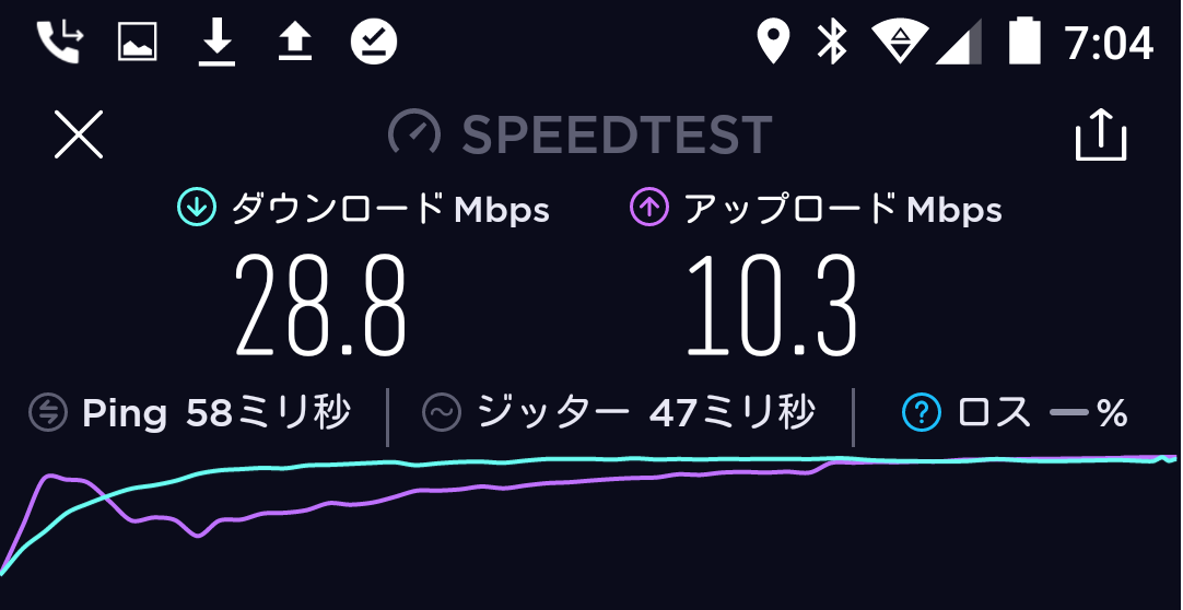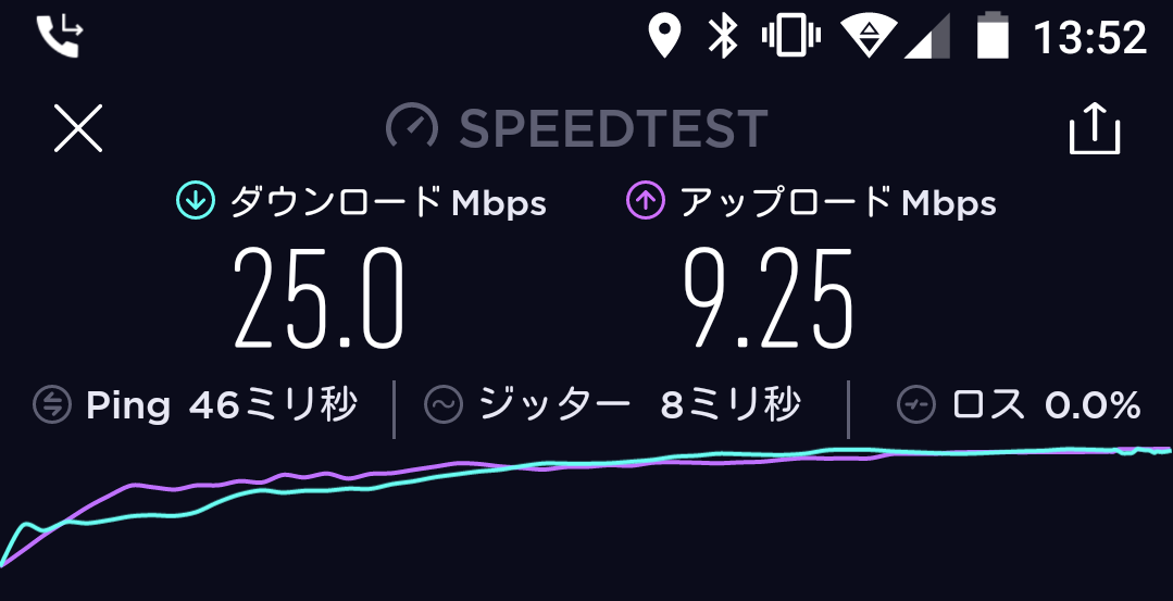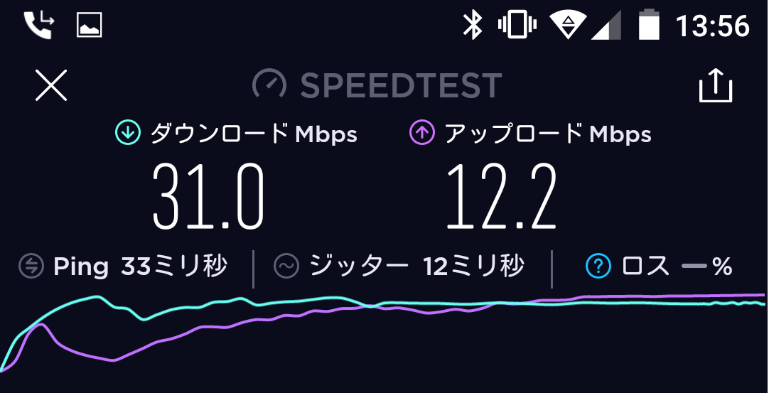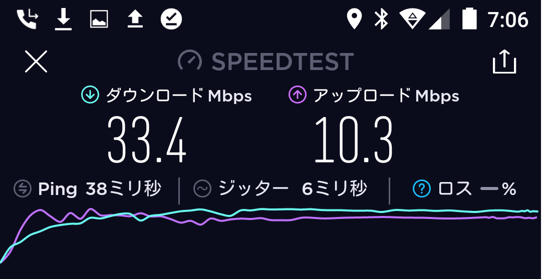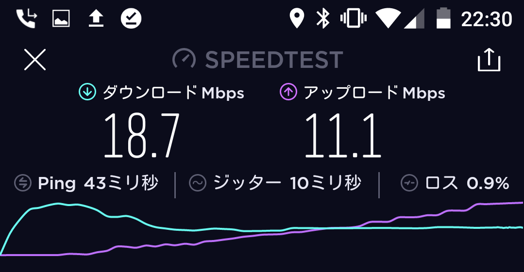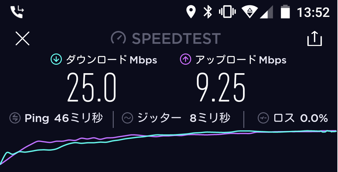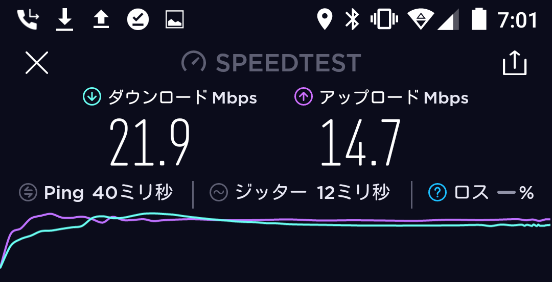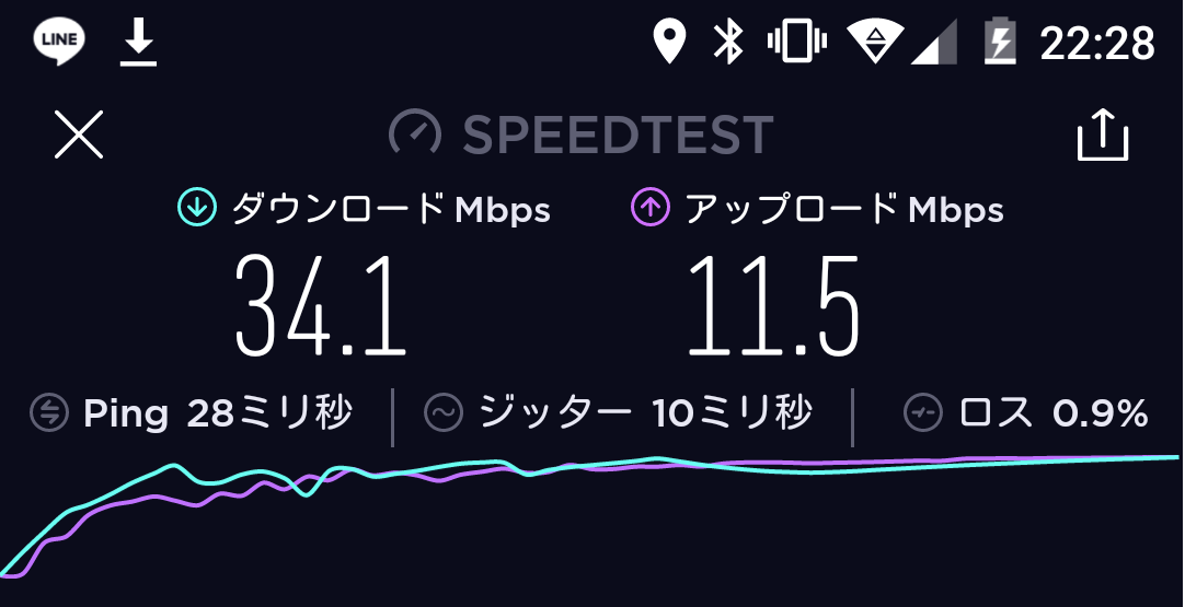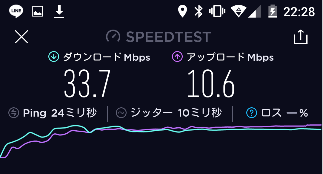 結果、平均20~25Mbpsというネクストモバイルにくらべ、WiMAXのL01sは平均で30~35Mbpsとわずかに上回っておりました。