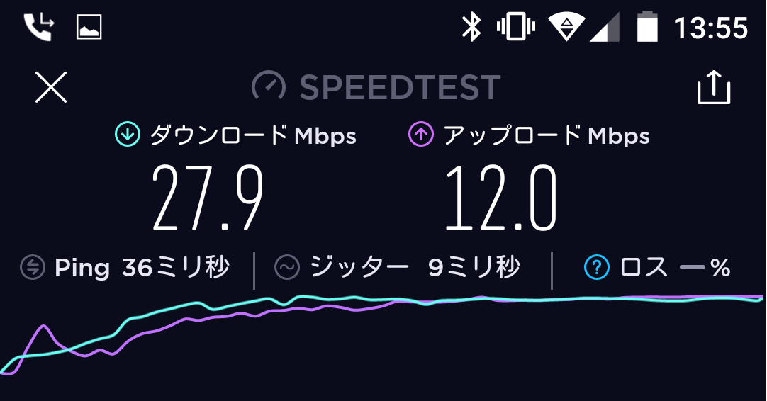 - WiMAXのL01sの通信速度とほぼ同レベルだった