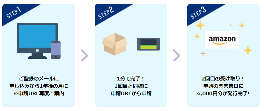 契約直後に申請URLを受け取るだけなので、ほぼ100%貰い損ねがないシステムでした。
