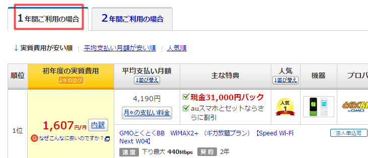 価格comはデフォルト設定が『1年間の実質料金』というのは、ちょっと意地が悪いなーって思いませんか?