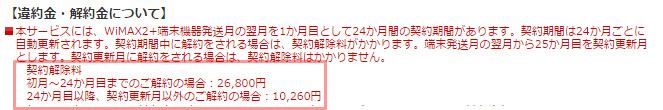 さらにプロバイダによってはWiMAX共通の解約金と別に、個別で違約金を設定している会社もあります。