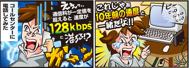 要は、月間データ通信量による制限、直近の3日間のデータ通信量の制限はもちろんあるけど『理由がどうであれ、使い過ぎって判断したら勝手に低速化するからね!!』という強引な通信制限があったのです…おぉこわ。