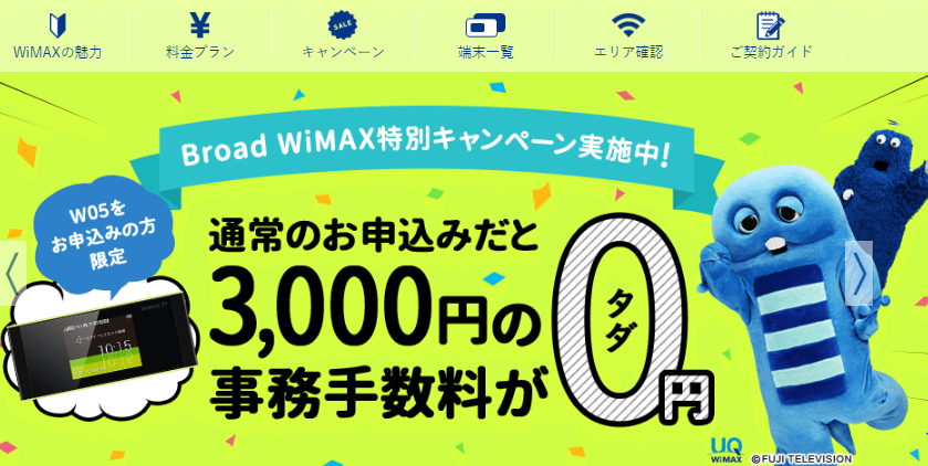 Broad WiMAXの事務手数料0円キャンペーンとは