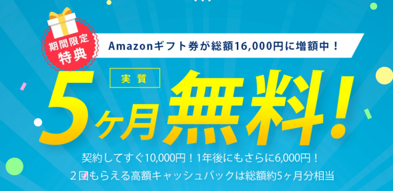 このように初月~5ヶ月間で発生する費用と同じ金額、約16,000円がシンプルにキャッシュバックとして貰えちゃうからです。そこでもしかすると…