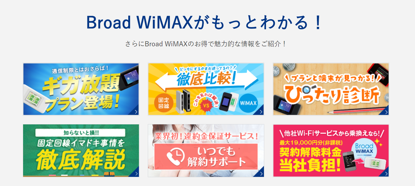WiMAX業界の大手、GMOとくとくBB、さらに本家UQ WiMAXと比較しても、こういった保証を用意したプロバイダは今のところBroad WiMAXただ1社しか見つかりませんでした。