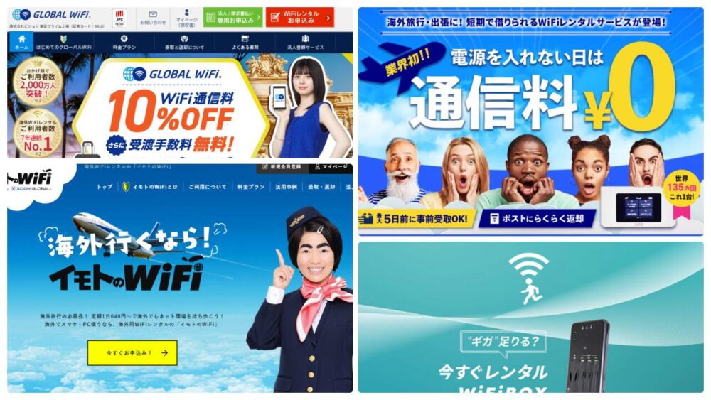 海外旅行むけレンタルWi-Fiの人気4社を、料金システム、手続きの簡単さ、受け取り場所などすべてを比較してみました。