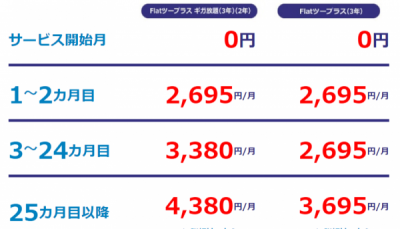 他とちがい25か月目以降にグンと料金が上がるわけではありませんが、そもそも2か月目以降ずっと4,100円という料金が少々高いという気もします。