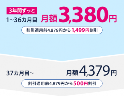 月額料金を36か月間割引