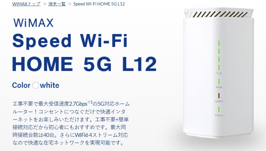 Speed Wi-Fi HOME 5G L12」は、2021年11月に発売された5G高速WiMAXホームルーターです。