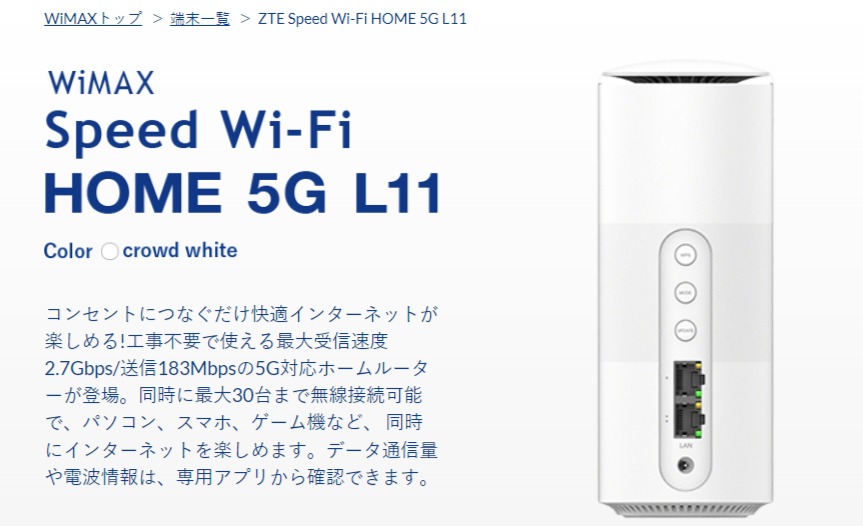 Speed Wi-Fi HOME 5G L11」は、従来のWiMAXホームルーターに比べて電波強度や通信速度が大幅に強化されており、従来モデルよりもサイズが大きくなっていますが、快適にインターネットを楽しみたい方にはぜひ検討していただきたい製品です。
