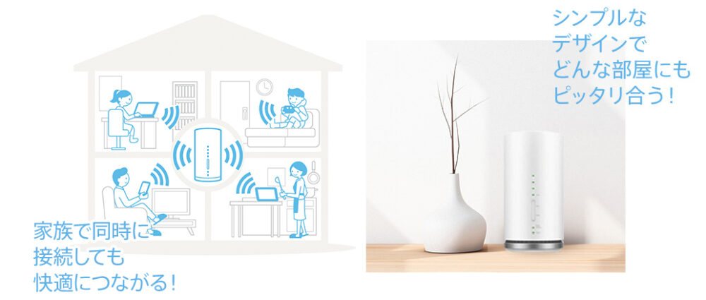 通常のWi-Fiルーターのような複雑な配線が不要なため、お部屋をすっきりとした印象に保つことができます。