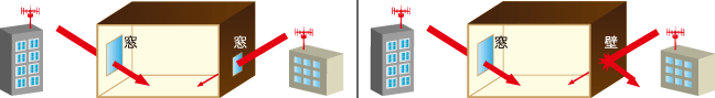 基地局の方向と窓(開口部)の大きさが受信感度に大きく影響するためです。