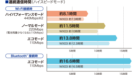 WiMAX 2+対応ルーターの省電力設定により、最大通信速度に影響を及ぼす場合があります。