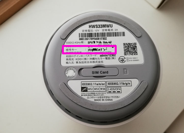 「端末のSSIDパスワード(暗号キー)」を接続するスマホやPC画面に入力するだけです。