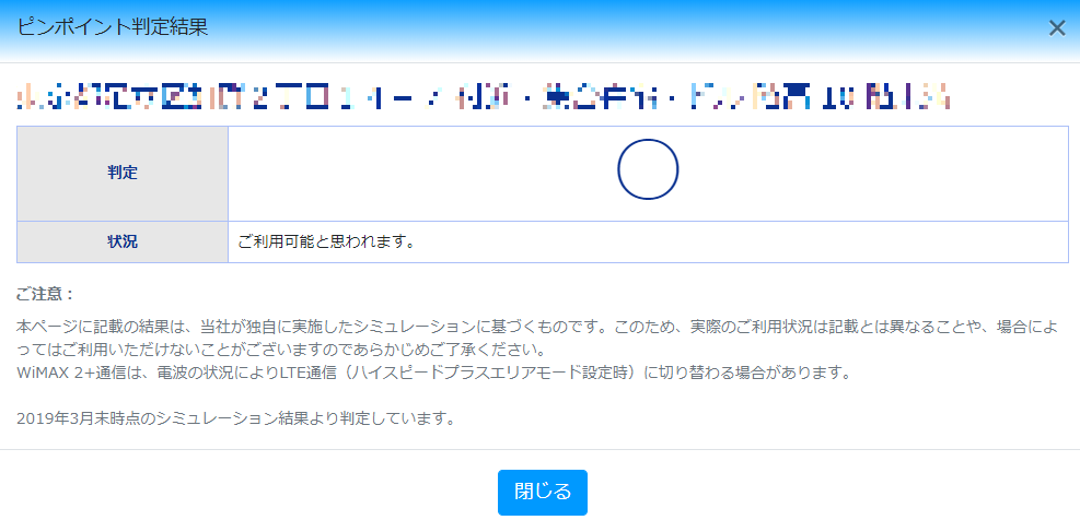 再度UQ WiMAXのピンポイントエリア判定を行い、エリア的に「△」「×」かどうかご確認ください。