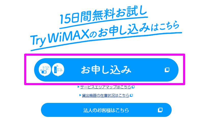 | エリア確認・端末の在庫確認を済ませたら今度は申込み。編集部がじっさいにTRY WiMAXを申し込んだ流れをわかりやすく解説します。 |