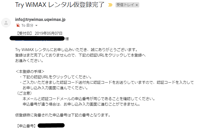 TRY WiMAXレンタルの本登録が完了し、手続きは終了。あとは端末が自宅に届くのを待つだけです。