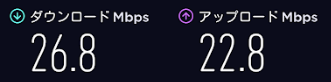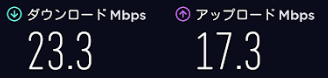 下り速度 25.2Mbps 上り速度 17.3Mbps |