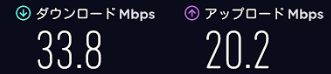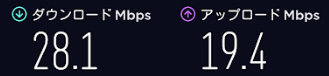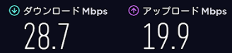 | 平均速度 | 下り速度 31.25Mbps 上り速度 20.05Mbps |