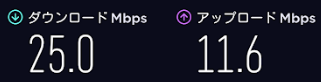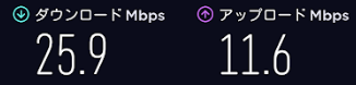 下り速度 25.5Mbps 上り速度 11.6Mbps |