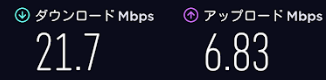 | 平均速度 | 下り速度 18.65Mbps 上り速度 6.0Mbps |