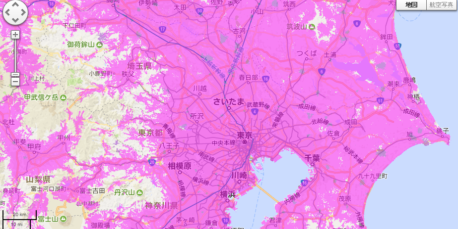 関東地方だったらこんな感じで、エリアが広がりまくった結果、人口カバー率99%というレベルに達しています!!