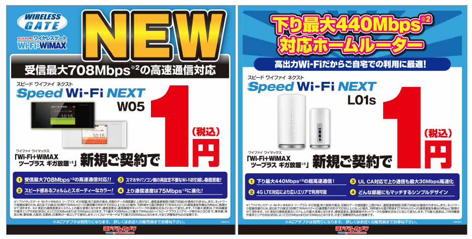 ヨドバシカメラ的にはWiMAX2+回線とワイヤレスゲートWi-Fiスポットの二つが使えるのがウリとしています。